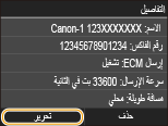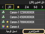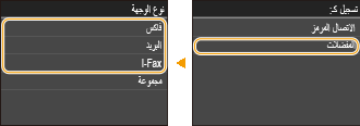 <إعدادات الفاكس>. مع ذلك، يتم تفعيل الإعدادات المحددة من <دليل العناوين> للإعدادات المفصلة الخاصة بجهات الاتصال المسجلة في دفتر العناوين. |
