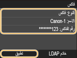 ![]() إذا ظهرت شاشة توثيق الهوية (التحقق من الشخصية) عندما تنقر على <بدء البحث>، أدخل اسم المستخدم الخاص بجهازك وكلمة السر (كلمة المرور) المسجّلة في خادم LDAP، وانقر على <تطبيق>. تسجيل خوادم LDAP