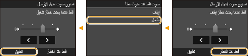 حدد <تشغيل> (إصدار نغمة) أو <إيقاف> (عدم إصدار نغمة).