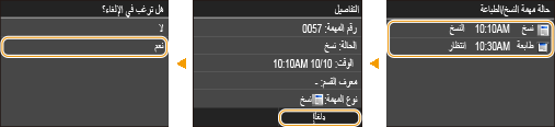 قم باختيار مستند النسخ على الشاشة <حالة مهمة النسخ/الطباعة>