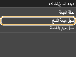 عندما يتم ضبط <عرض سجل المهمة> على <إيقاف>, فإنه لا يمكنك التحقق من سجل مهمة النسخ. عرض سجل المهمة