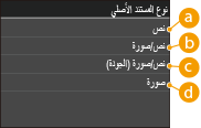 إذا تم تحديد إعداد غير <نص> , يتم تعيين <الخلفية> تلقائيًا على <ضبط (يدوي)>. ضبط الكثافة