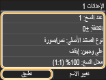 فور قيامك باستدعاء تركيبة الإعداد، يمكنك أيضًا تغيير إعدادات النسخ كما تقتضي الحاجة.