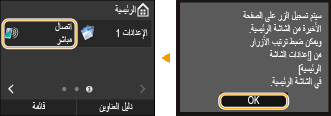 في حالة تحديد <نعم>, تظهر رسالة. اطلع على الرسالة ثم انقر على <OK>. تتم إضافة تركيبة الإعداد المسجل إلى الشاشة الرئيسية كزر اختصار.