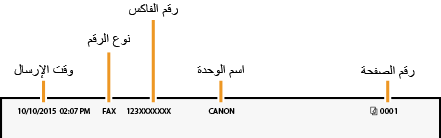 قم بتسجيل رقم الفاكس واسم الوحدة على الجهاز. تتم طباعة هذه المعلومات في أعلى كل صفحة مرسلة من الجهاز.