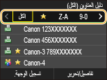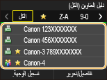 إذا قمت بتحديد اتصال جماعي في الخطوة ٢، فإنه يتم عرض <عدد الوجهات: XX>. ويؤدي النقر على هذا العنصر إلى عرض الوجهات المسجلة في المجموعة.