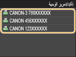 إذا قمت بتحديد اتصال جماعي في الخطوة ٢، فإنه يتم عرض <عدد الوجهات: XX>. ويؤدي النقر على هذا العنصر إلى عرض الوجهات المسجلة في المجموعة.