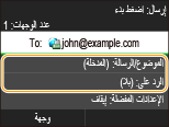 ![]() ![]() إن عنوان الرد على الرسالة الذي يمكن تحديده هو دومًا واحد من عناوين البريد الإلكتروني المسجلة في دفتر العناوين.