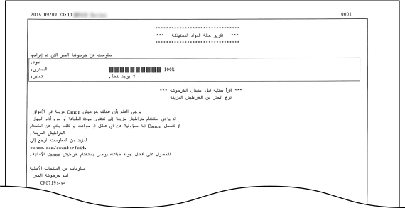 يمكنك التحقق من حالة المواد المستهلكة المركبة في الجهاز.