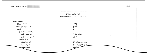 يمكنك التحقق من قائمة أسماء السياسات وإعدادات IPSec المسجلة في الجهاز من خلال طباعة قائمة سياسات IPSec.