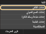 يتم سرد جميع الإعدادات الخاصة بالفاكس مزودة بأوصاف موجزة. ويتم تمييز الإعدادات الافتراضية بشكل خنجر (
