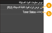 <عرض معلومات المواد المستهلكة (Toner Status/RUI)>