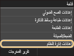 إعدادات المؤقت إعدادات مشتركة إعدادات النسخ إعدادات الفاكس*٣ إعدادات المسح الضوئي إعدادات طباعة وسائط الذاكرة إعدادات الطابعة إعدادات إدارة النظام تهيئة الكل |