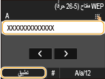 أدخل مفتاح الشبكة باستخدام مفاتيح الأرقام، وانقر على <تطبيق>.