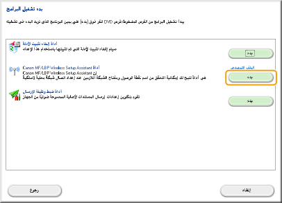 انقر فوق [بدء] من أجل [أداة Canon MF/LBP Wireless Setup Assistant].