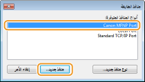 حدد [Canon MFNP Port] في [أنواع المنافذ المتوفرة] ثم انقر فوق [منفذ جديد].