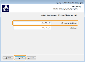 أدخل عنوان IP أو اسم DNS الخاص بالجهاز، ثم انقر فوق [التالي].
