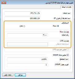 تحت [نوع البروتوكول]، قم بتحديد [RAW] أو [LPR] وتغيير [رقم المنفذ].