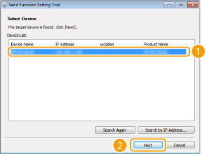 انقر على [Search Again]. إذا استمرت المشكلة، انقر على [Search by IP Address]، وأدخل عنوان IP الخاص بالجهاز، ثم انقر على [OK].