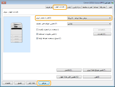 يمكنك استخدام برنامج تشغيل الطابعة PCL6 وكذلك برنامج تشغيل الطابعة UFR II. وتختلف إعدادات الطابعة المتاحة تبعًا لبرنامج تشغيل الطابعة. ولمزيد من المعلومات، انقر على [تعليمات] على شاشة كل برنامج من برامج تشغيل الطابعة.
