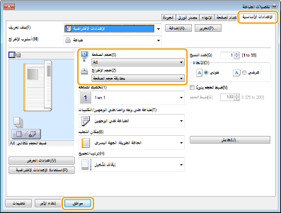أدخل نسبة الطباعة في [ضبط الحجم]