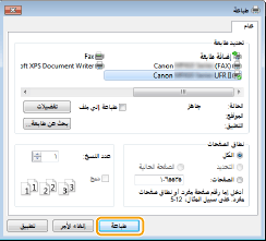 تختلف كيفية عرض مربع حوار الطباعة لكل تطبيق. لمزيد من المعلومات، راجع دليل التعليمات الخاص بالتطبيق الذي تستخدمه.