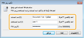 أدخل [اسم المستند], [اسم المستخدم], و[رمز PIN] وانقر فوق [موافق].