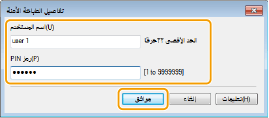 أدخل [اسم المستخدم] و[رمز PIN], وانقر فوق [موافق].