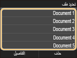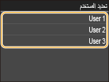 إذا كانت هناك مستندات مضمونة من مستخدمين اثنين أو أكثر محفوظة في الذاكرة، يتم عرض شاشة <تحديد المستخدم> قبل شاشة <تحديد ملف>. قم باختيار اسم المستخدم الخاص بك.