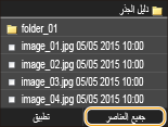 ![]() ![]() إذا اخترت ملفاً قبل أن تنقر على <جميع العناصر>، يمكنك فقط اختيار ملفات الصغية ذاتها.