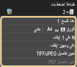 *٢ يؤدي ضبط <إعدادات الطباعة الآمنة> على <إيقاف> إلى السماح بطباعة بيانات حتى ٥٠ م ب (إعدادات الطباعة الآمنة).