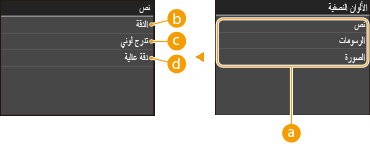 يمكنك اختيار نوع الأصل تبعًا للصورة التي ستتم طباعتها. حدد <أولوية الصورة> أو <أولوية النص>.