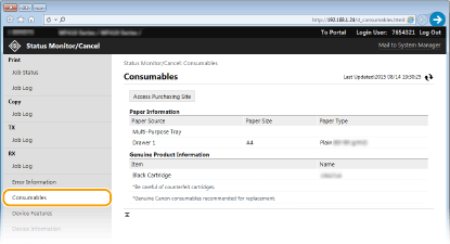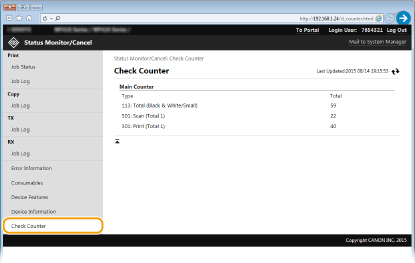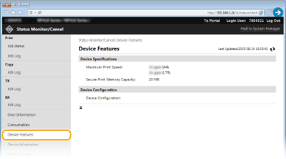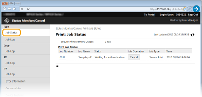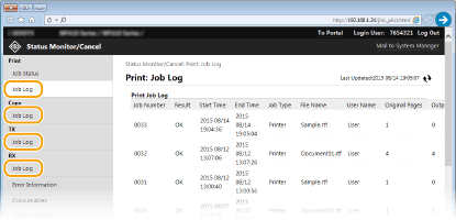 بصرف النظر عن إعدادات إدارة رمز تعريف القسم Department ID Management، يتم إدراج كل مستندات الطباعة التي تتم طباعتها حاليًا والتي في انتظار طباعتها.
