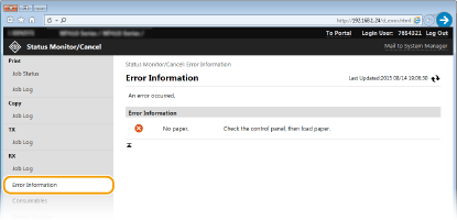 انقر فوق [Job Number] على المستندات التي تم إيقاف طباعتها مؤقتًا لعرض المعلومات التفصيلية. يمكنك التحقق من اسم المستخدم وعدد صفحات المستند المطبوع.