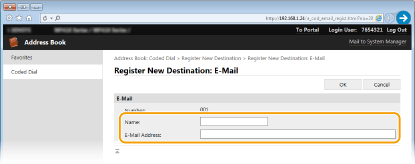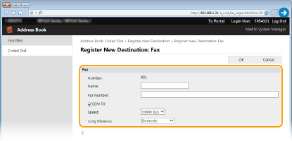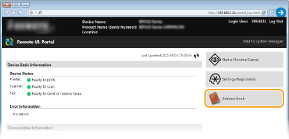 تسجيل الوجهات في دفتر العناوين من Remote UI (واجهة المستخدم البعيدة)