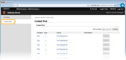 يمكنك أيضًا تسجيل الوجهات في المفضلات. في هذه الحالة، انقر فوق [Favorites] بدلاً من [Coded Dial].