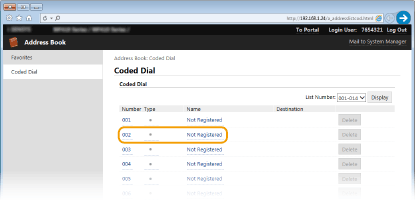 يمكنك حذف وجهة مسجلة بالنقر فوق زر [Delete] المناظر.