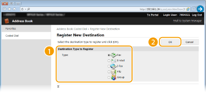حدد [Destination Type to Register] وانقر فوق [OK].