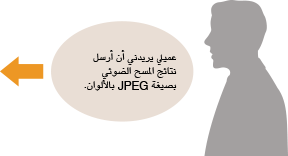 حدّد عنوان البريد الإلكتروني الخاص بعميلك باستخدام <تنسيق الملف> المعين على <JPEG> لإعدادات المسح الضوئي، وقم بتسجيل العنوان والإعدادات كمجموعة في <الإعدادات المفضلة>. يمكنك بعد ذلك استخدام مجموعة الإعدادات هذه بسهولة كلما احتجت إليها. تسجيل إعدادات المسح الضوئي التي تُستخدم بشكل متكرر (البريد الإلكتروني/فاكس الإنترنت/المجلد المشترك/خادم FTP)