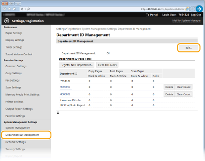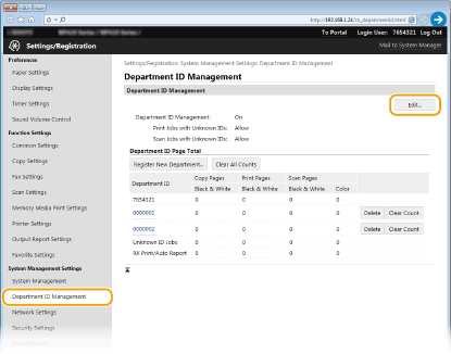 تحرير (تعديل) الإعدادات الخاصة برمز تعريف القسم Department ID المسجّل|