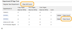 إذا كنت تريد إرجاع العدّ إلى الصفر، انقر رابط النص المطابق أسفل [Department ID] وانقر [Clear Count]