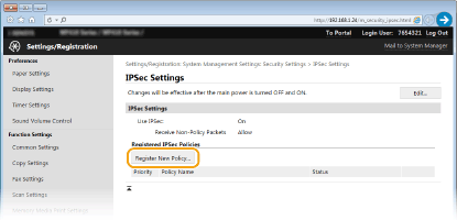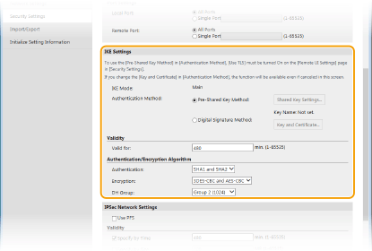 قم بتحديد الإعدادات [Valid for] و [Authentication]/[Encryption]/[DH Group].
