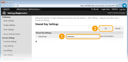 قم بإدخال ما يصل إلى ٢٤ حرفًا أبجديًا ورقميًا للمفتاح المشترك المسبق وانقر على [OK].