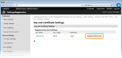 انقر على [Register Default Key] على الجانب الأيمن من زوج المفاتيح الذي تريد استخدامه.