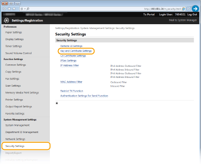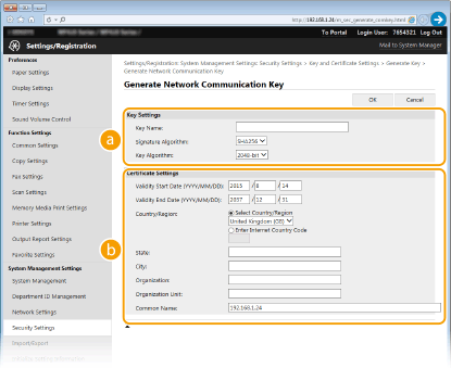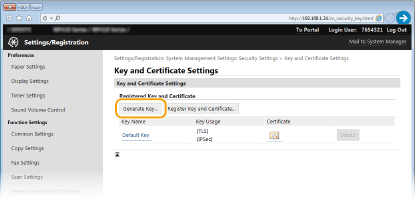 [Key and Certificate Settings].