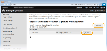 انقر على [Browse]، حدد الملف الخاص بطلب توقيع الشهادة، ثم انقر على [Register].