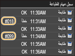 في حالة حدوث خطأ مثلاً إذا لم تكن الطباعة ناجحة أو يتعذر عليك إرسال الفاكس أو المستند الممسوح ضوئيًا أو استلامهما، يتم عرض رمز الخطأ المناظر في تقرير أو في شاشة <سجل المهمة> كعدد مكون من ثلاثة أرقام. تحقق من التالي لمعرفة الأسباب والحلول لكل رمز من رموز الخطأ. لمعرفة كيفية طباعة تقرير الخطأ والمعلومات الواردة في التقرير، راجع