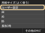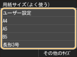 用紙をセットしても上の画面が表示されないときは常に同じ用紙を手差しトレイにセットするのであれば、その用紙のサイズや種類をあらかじめ登録しておいて操作を省くことができます。ただし、この登録が行われていると上の画面が表示されません。表示させるときは、手差しトレイでよく使う用紙サイズと種類を登録するで<用紙セット時に指定>を選択します。