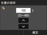 またはテンキーで倍率を入力し、<確定>をタップします。倍率は25~400%まで1%刻みで設定できます。