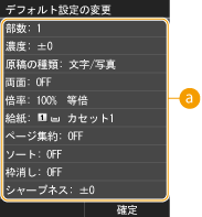 を押したときなどに表示される設定値を初期値といいます。この初期値を、ひんぱんに使用する操作内容に合わせて変更しておけば、コピーするたびに同じ設定をする手間が省けます。
